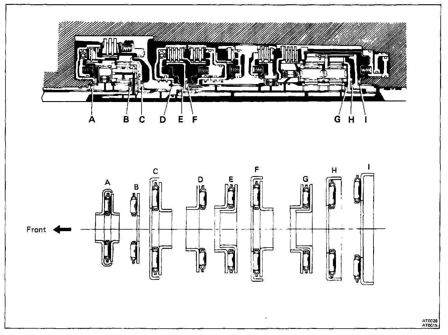 2. Before assembling new clutch discs, soak them in automatic transmission fluid for at least two hours.