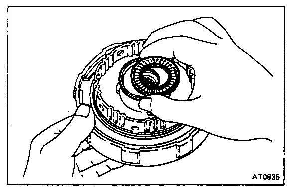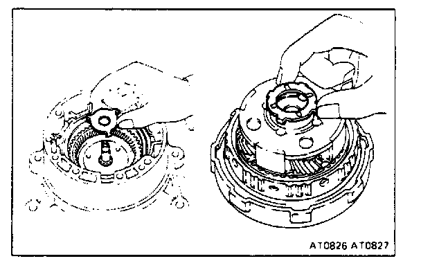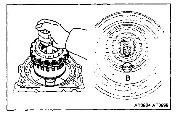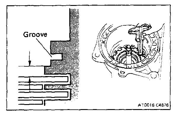 If the clutch pack is not lower than the ledge, components may be misassembled or there may be excess ATF on the discs.
