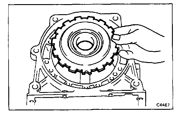 12. INSTALL THRUST BEARING RACE OVER SPLINED END OF REAR CLUTCH IN CASE