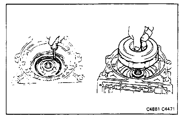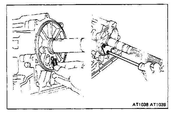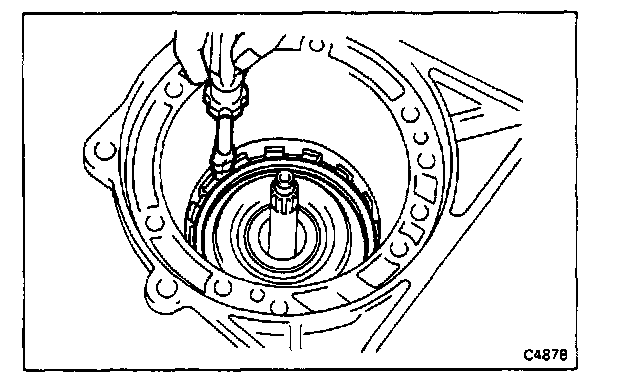 Use a large screwdriver to compress the snap ring. Push it into place by hand. Work around the case. Visually check to make sure that the ring is fully seated. Make sure that the ends of the snap ring are between the lugs.