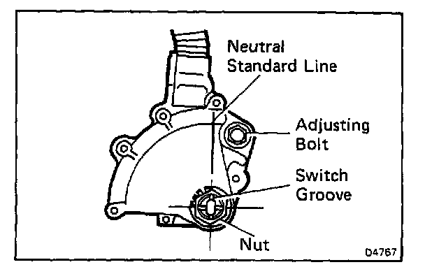d. Align the neutral standard line and the switch groove and tighten the adjusting bolt.