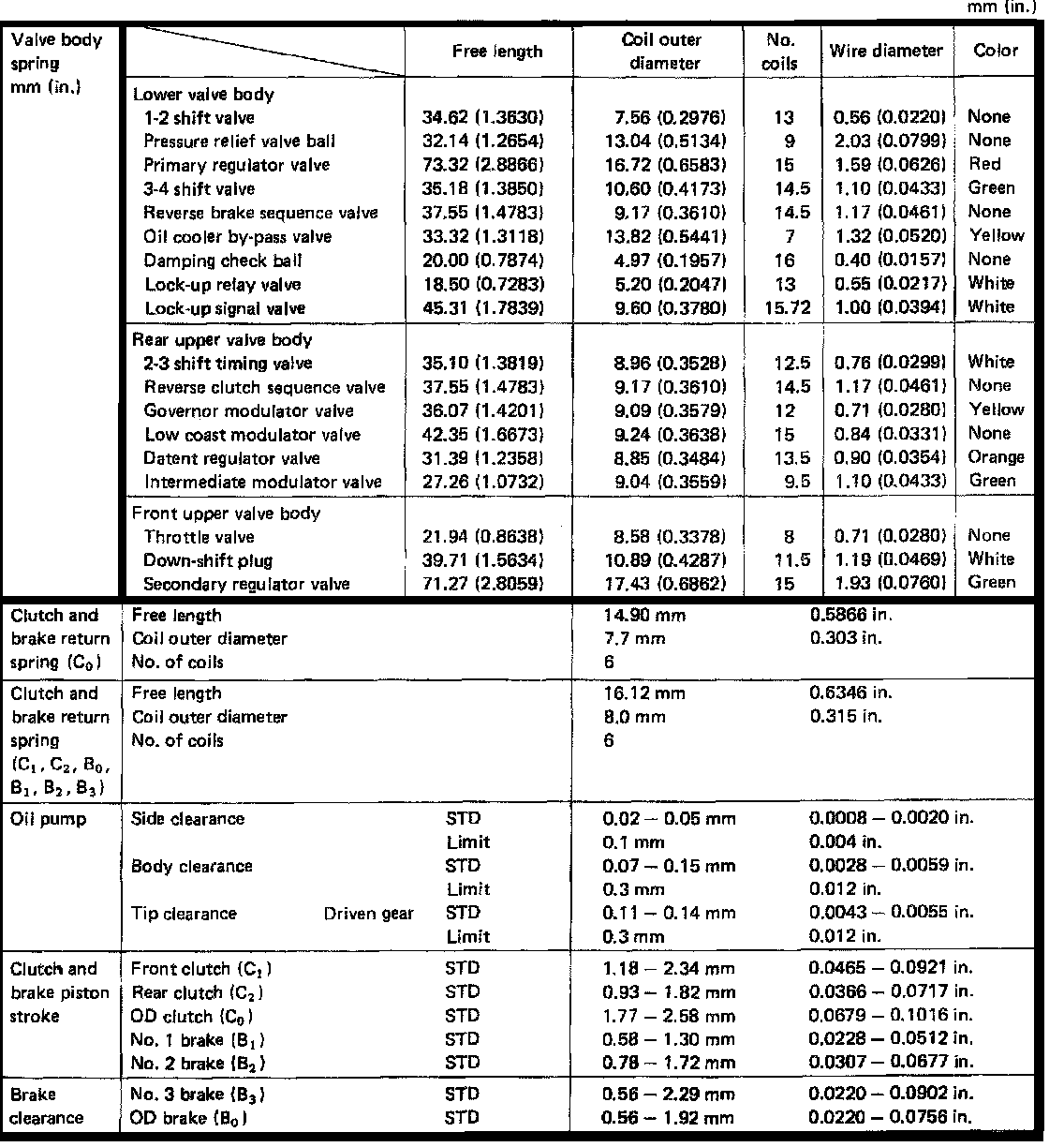A42DL 3-spd O/D A/T, Valve Body/Clutch Clearances: