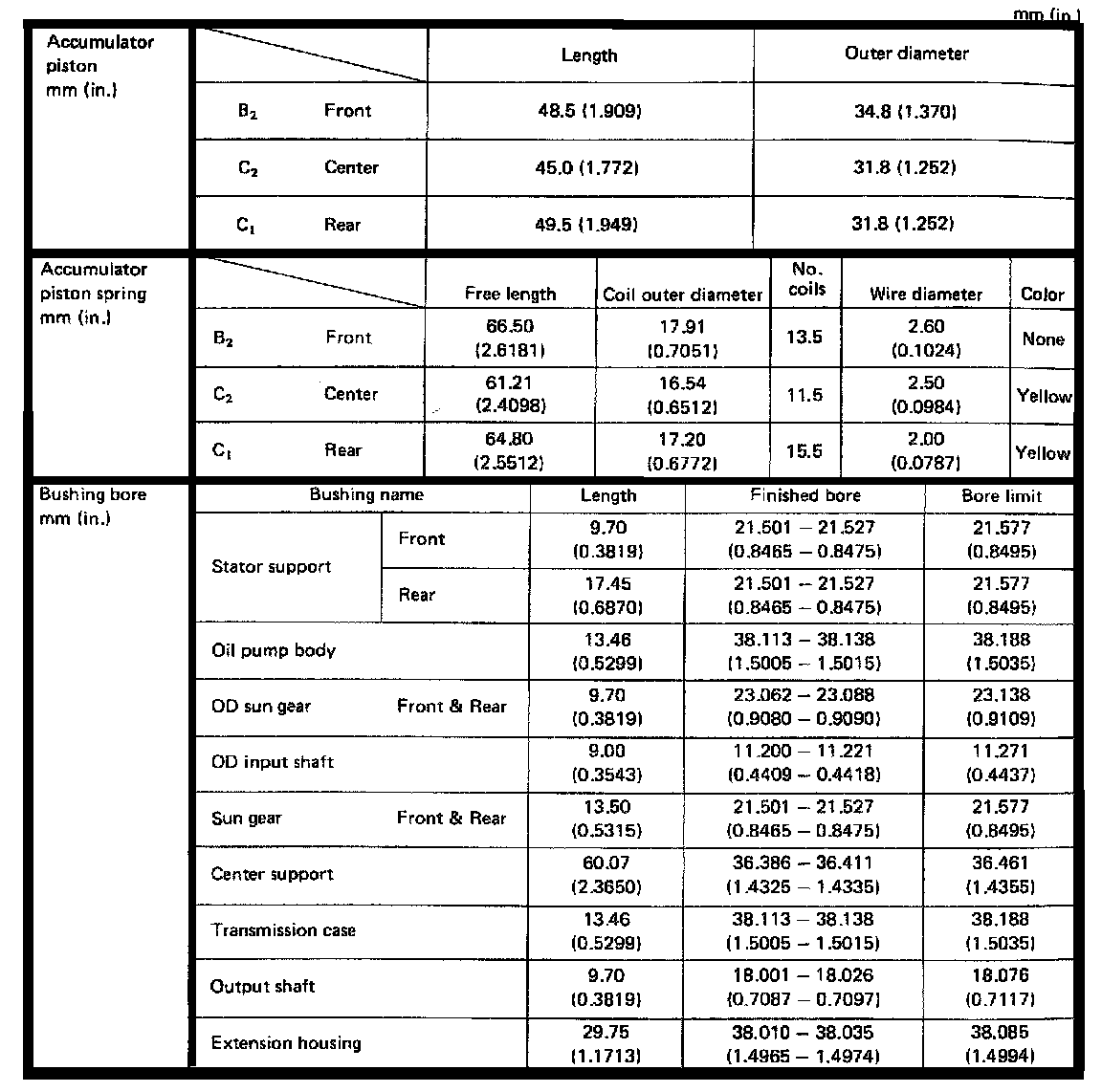 A42DL 3-spd O/D A/T, Accumulator/Bushing Clearance: