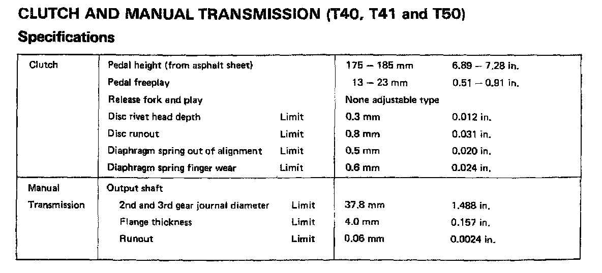 T40,T41 & T50 4/5 -spd M/T, Clutch/Transmission Clearances: