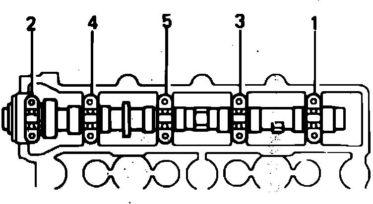28. Remove camshaft bearing caps, oil seal and camshaft.