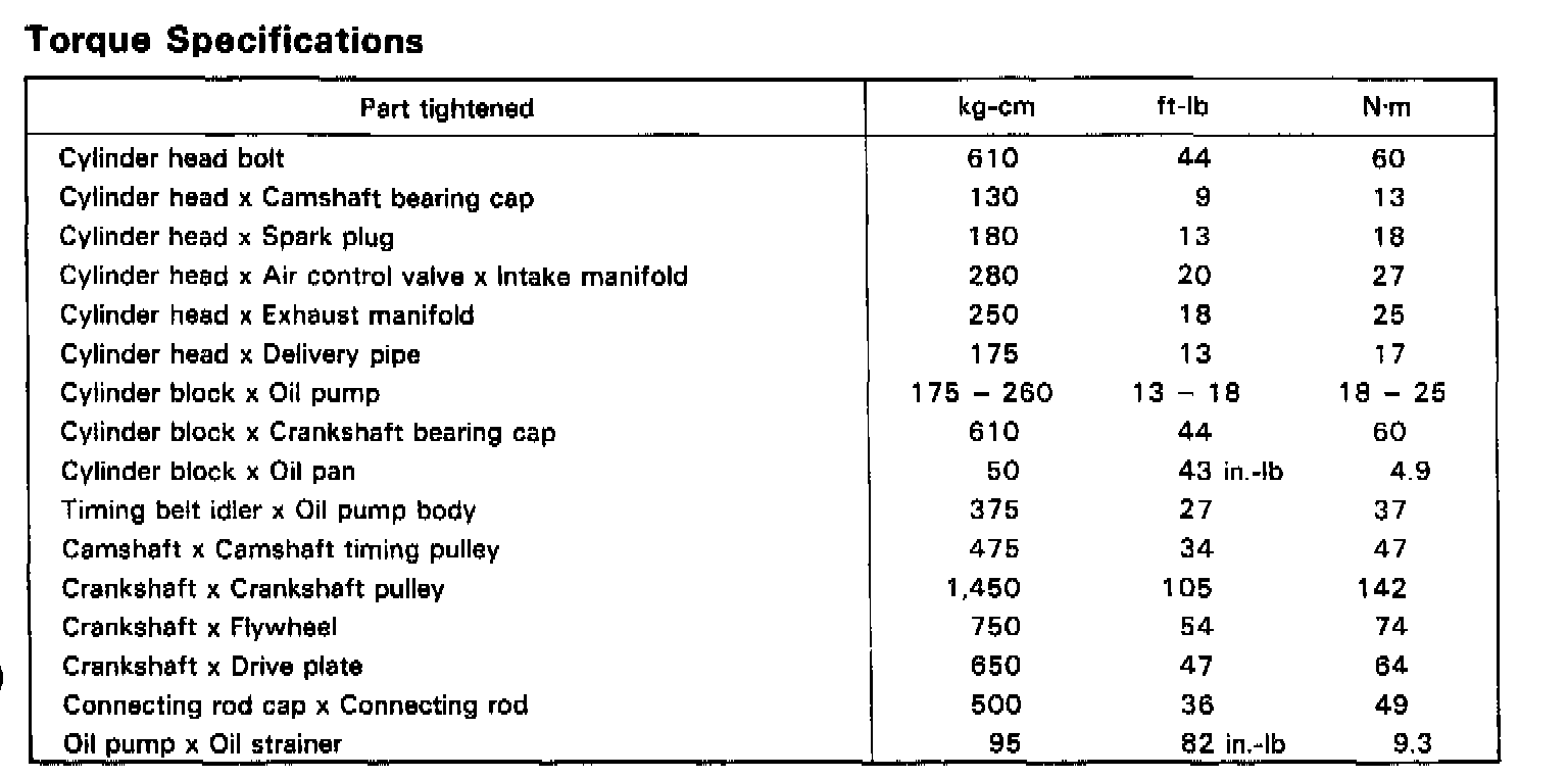 Torque Chart 4A-GE: