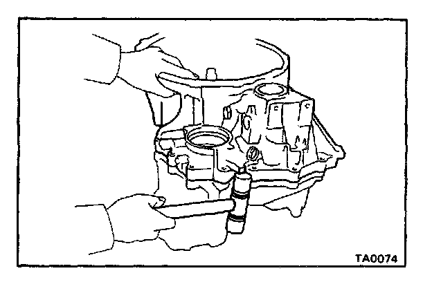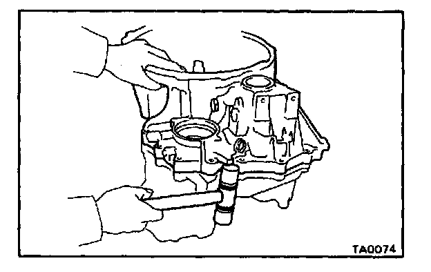 d. Using SST, drive in a new outer race into the transaxle case.