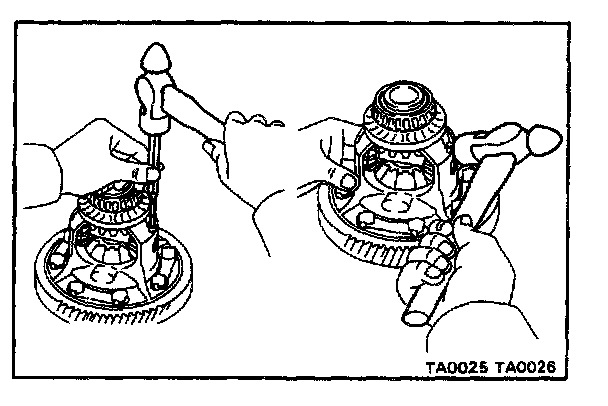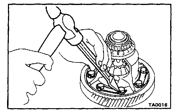 c. Using a copper hammer, tap on the ring gear to remove it from the case.