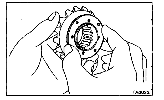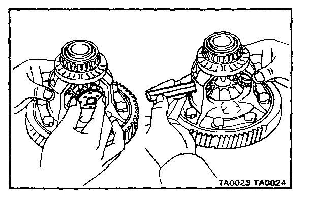 c. Remove the two pinions, two side gears and four thrust washers.