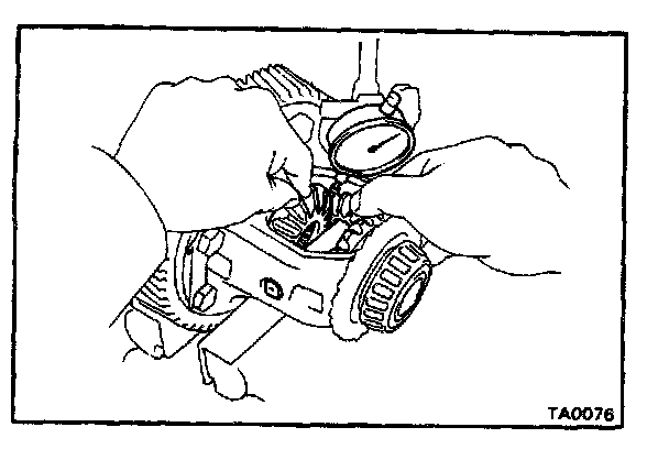 Measure the backlash of the side gear while holding one pinion toward the case.