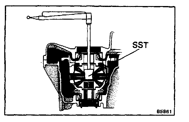 b. Using SST and a torque meter, measure the preload of the side bearing.