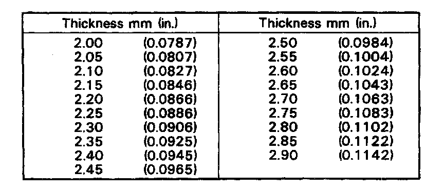 e. Refering to the table below, select thrust washers which will ensure that the backlash is within specification. Try to select washers of the same size of both sides.