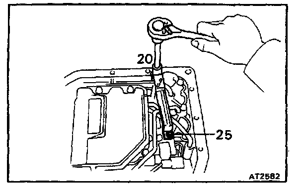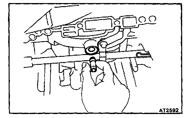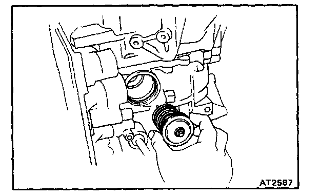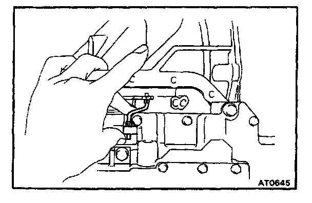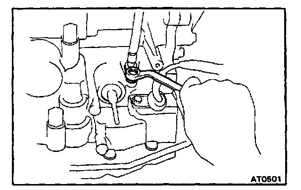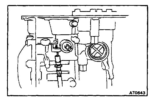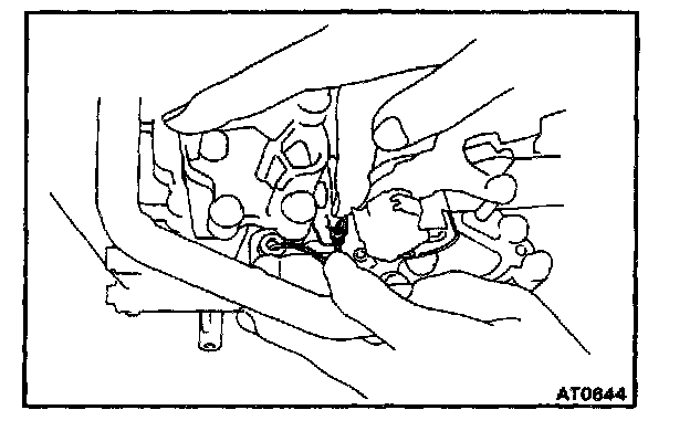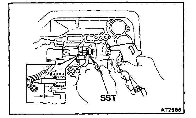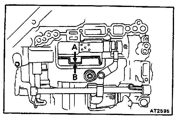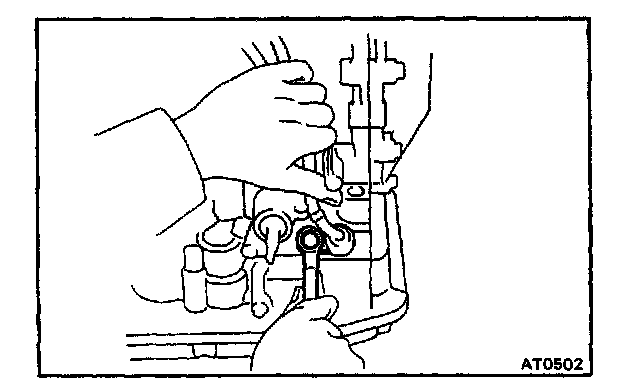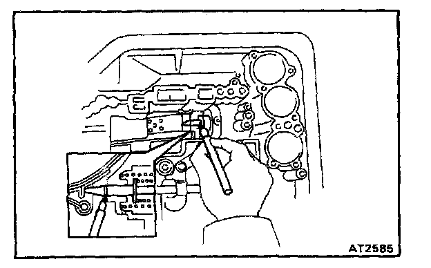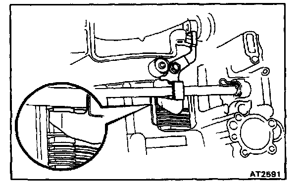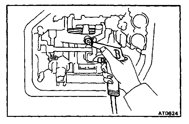b. Check that the manual valve lever is in contact with the center of the roller at the tip of the detent spring.