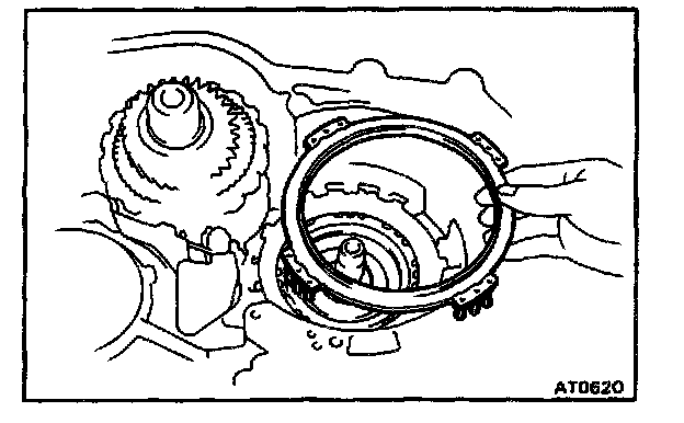 g. While rotate the forward clutch to mesh the front planetary ring gear and discs.