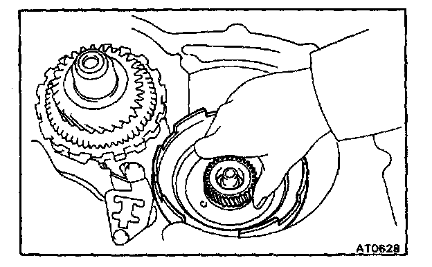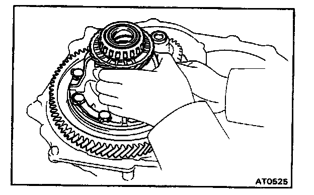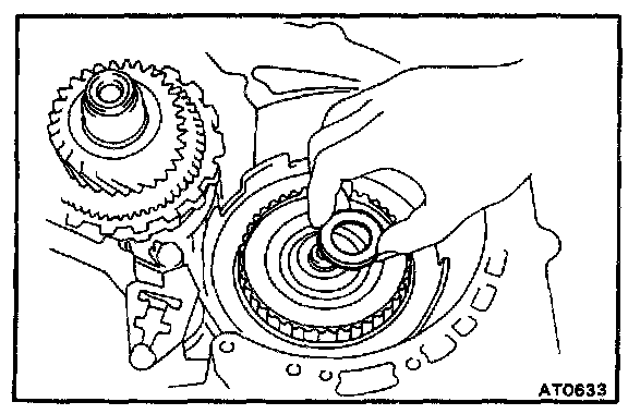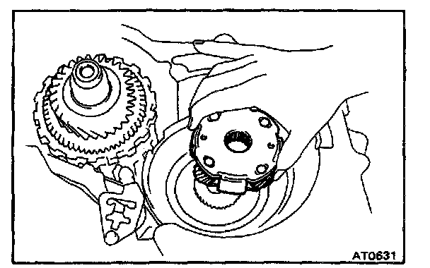 CAUTION: Do not push on the oil pump strongly or the oil seal ring will stick to the direct clutch drum.