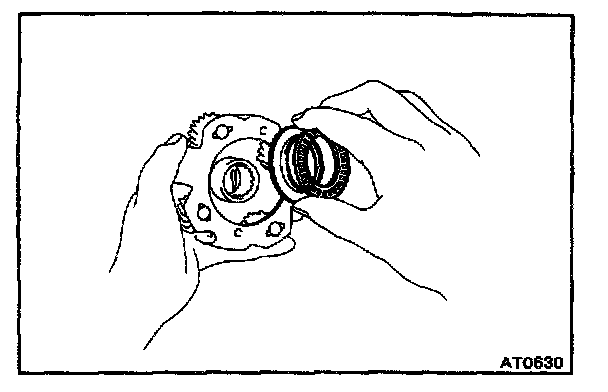 b. Coat the race with petroleum jelly and install it onto the tip of ring gear flange.