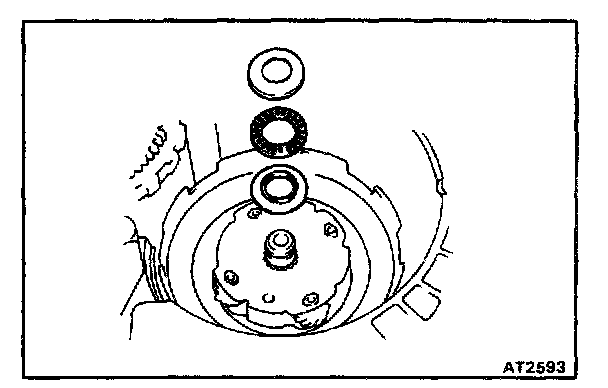 Check the distance between the surface of the 2nd brake hub and rear planetary gear.