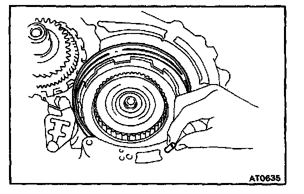 d. Mesh the hub with the flukes of the direct clutch while turning the clutch drum or forward clutch.
