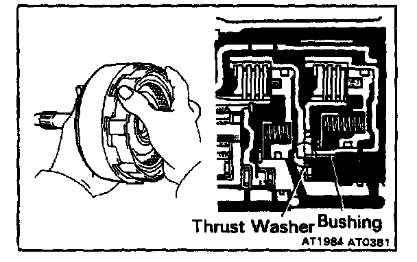 e. If the flukes of the discs are meshed with the hub correctly, the end of the bushing with the direct clutch drum will be flush with the surface of the forward clutch.