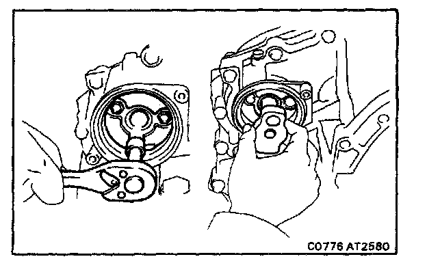 c. Place the oil pump through the input shaft, and align the bolt holes of the pump body with the transmission case.