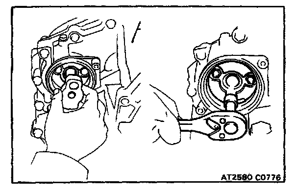a. Push the pin with a small screwdriver and remove it from the bolt hole of the oil pump mounting.