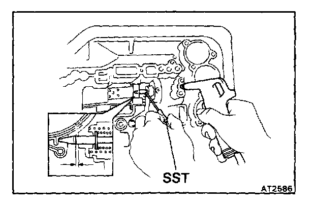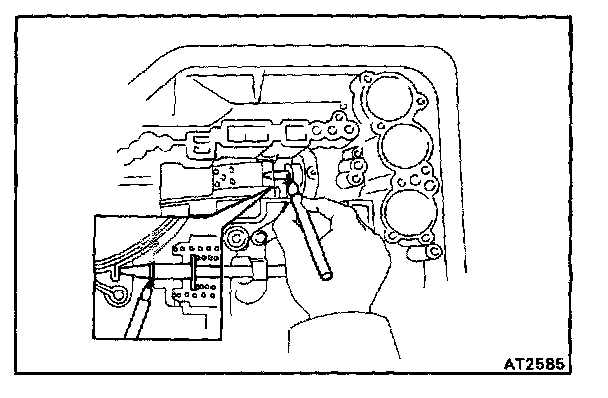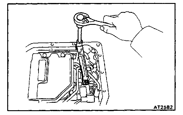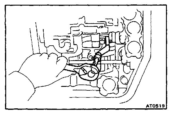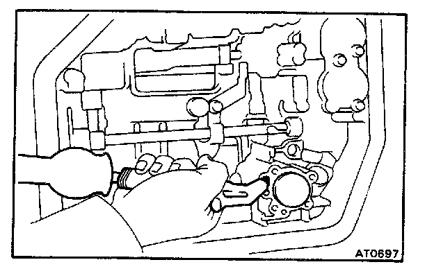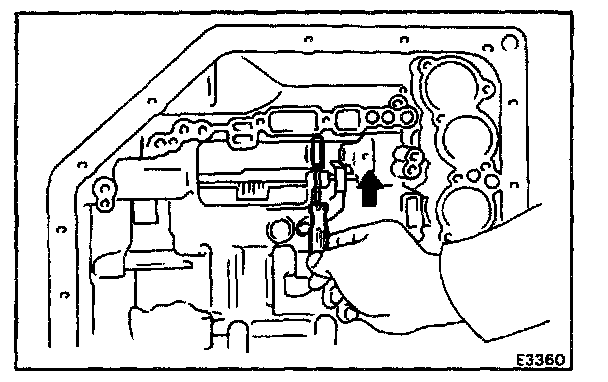 c. Disconnect the manual valve connecting rod from the manual valve lever and remove the valve body.