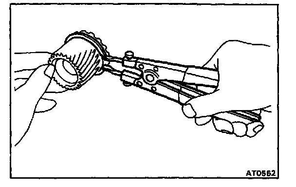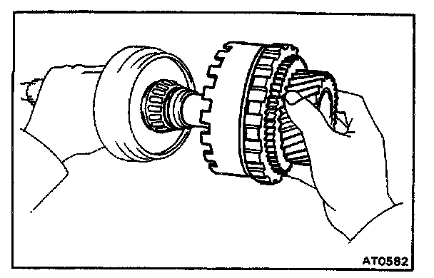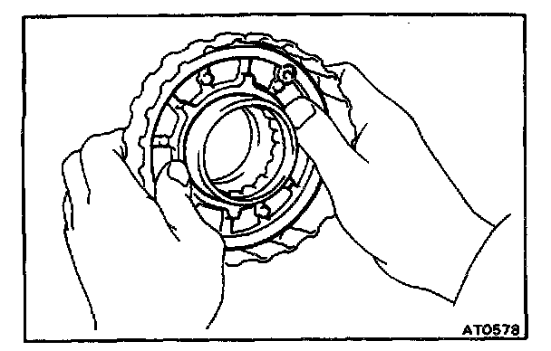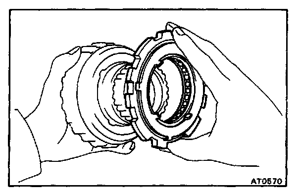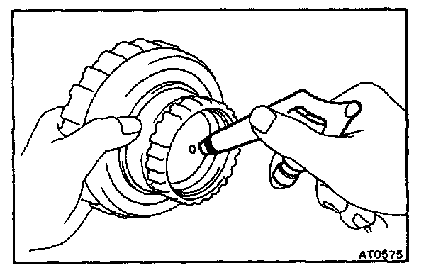 Hold the clutch drum and turn the one-way clutch. The one-way clutch should turn freely counterclockwise and lock clockwise.