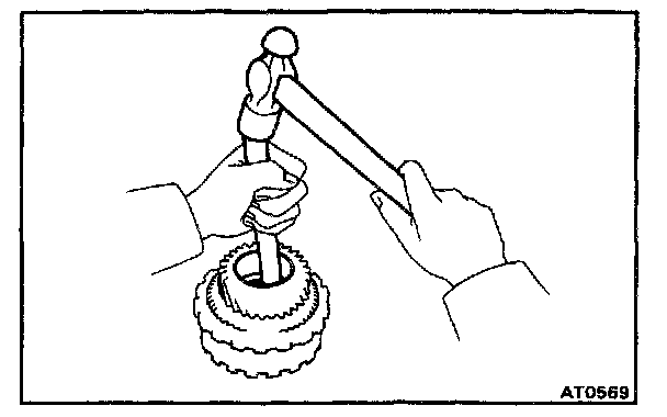 11. REMOVE BEARING OUTER RACE WITH BRASS BAR AND HAMMER