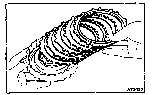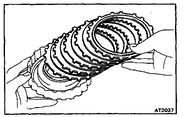 Check that the sliding surface of disc is not worn or burnt. If the disc is worn or burnt, replace all discs.