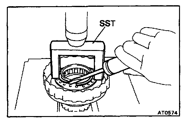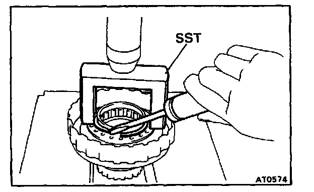 6. REMOVE THRUST NEEDLE BEARING AND RACE