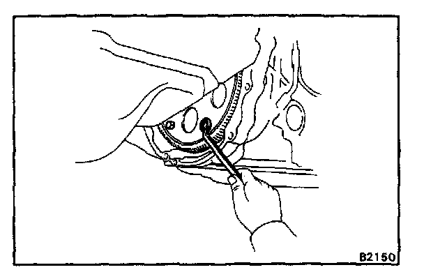 b. Hold the crankshaft pulley bolt with a wrench, remove the six bolts.