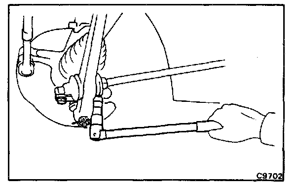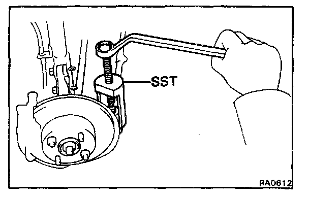 c. Using SST, disconnect the suspension arm from the rear axle carrier.