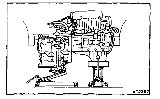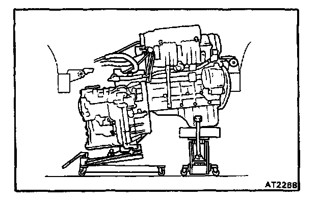 22. HOLD ENGINE AND TRANSAXLE WITH TWO JACKS, OR A CHAIN BLOCK AND JACK