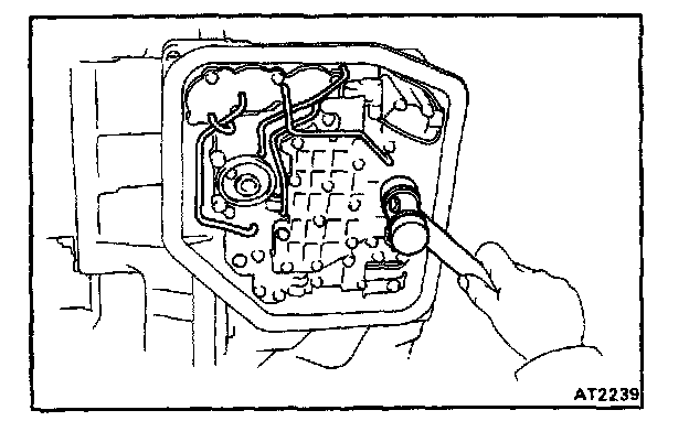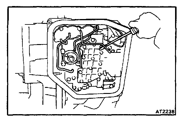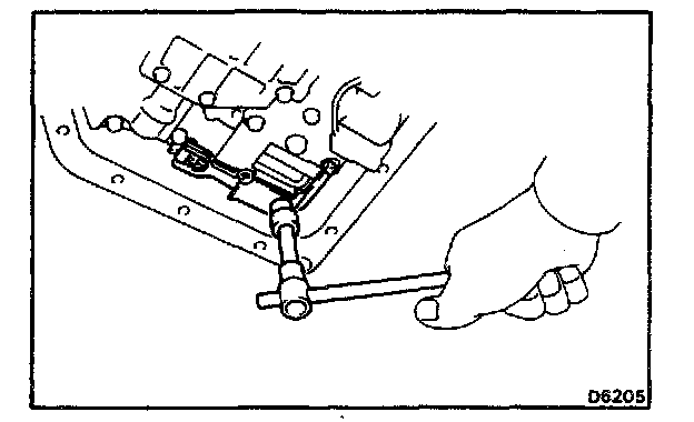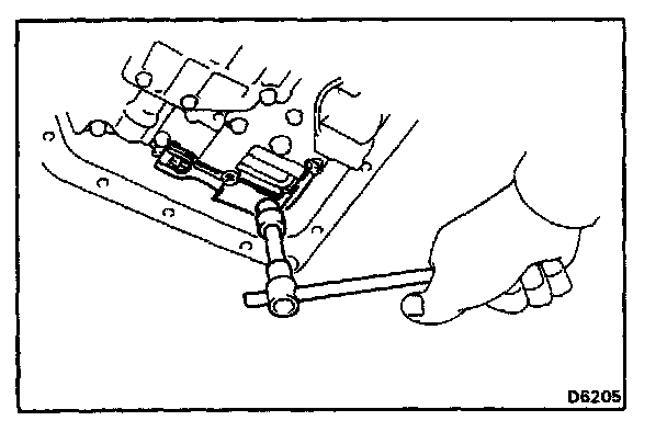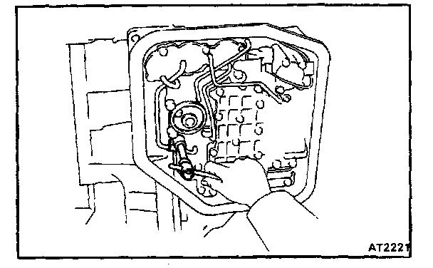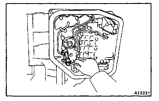 c. Disconnect the manual valve connecting rod and remove the valve body.