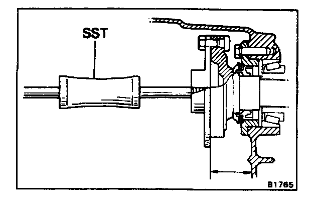 a. In order to install the side gear shaft, push the side gear shaft to the differential. Measure and note the distance between the transaxle case and side gear shaft.