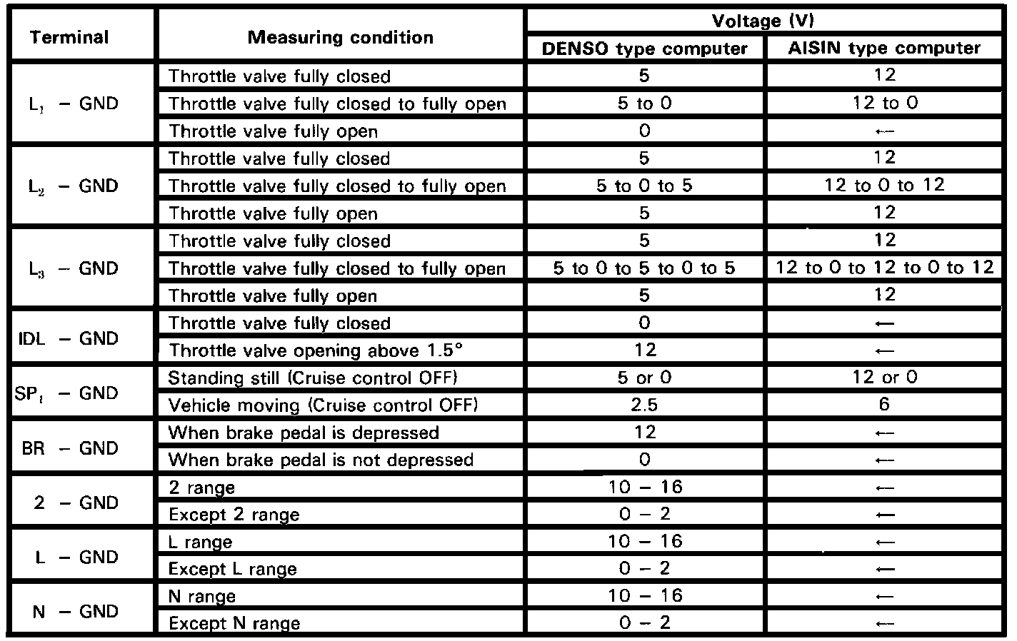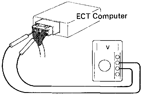 ELECTRONIC CONTROLLED TRANSAXLE (ECT) COMPUTER TERMINAL VOLTAGE INSPECTION.