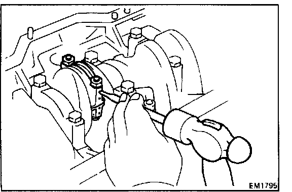 (c) Using a plastic-faced hammer, tap the rod bolts lightly and lift off the rod cap.