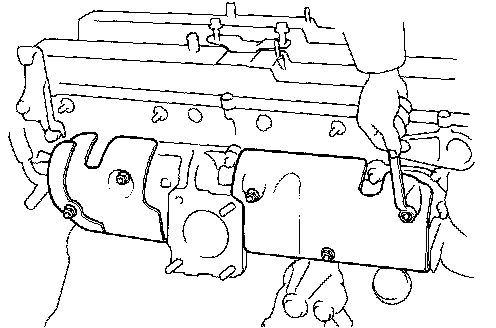 (c) Install the intake chamber with connector and vacuum transmitting pipes with the two nuts and five bolts.