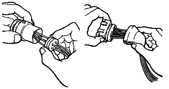 b. Insert the test probe into the connector from wiring side when checking the continuity, amperage or voltage.