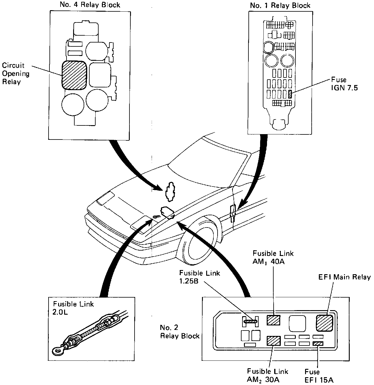 Before beginning inspection, it is best to first make a simple check of the fuses, fusible links and the condition of the connectors.