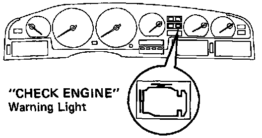 The "CHECK ENGINE" warning light on the instrument panel informs the driver that a malfunction has been detected. The light goes out automatically when the malfunction has been cleared.