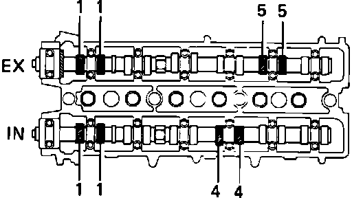 - Measure the clearance of No.1 (IN) and No.4 (IN) and No.1 (EX) and No.5 (EX) valves.