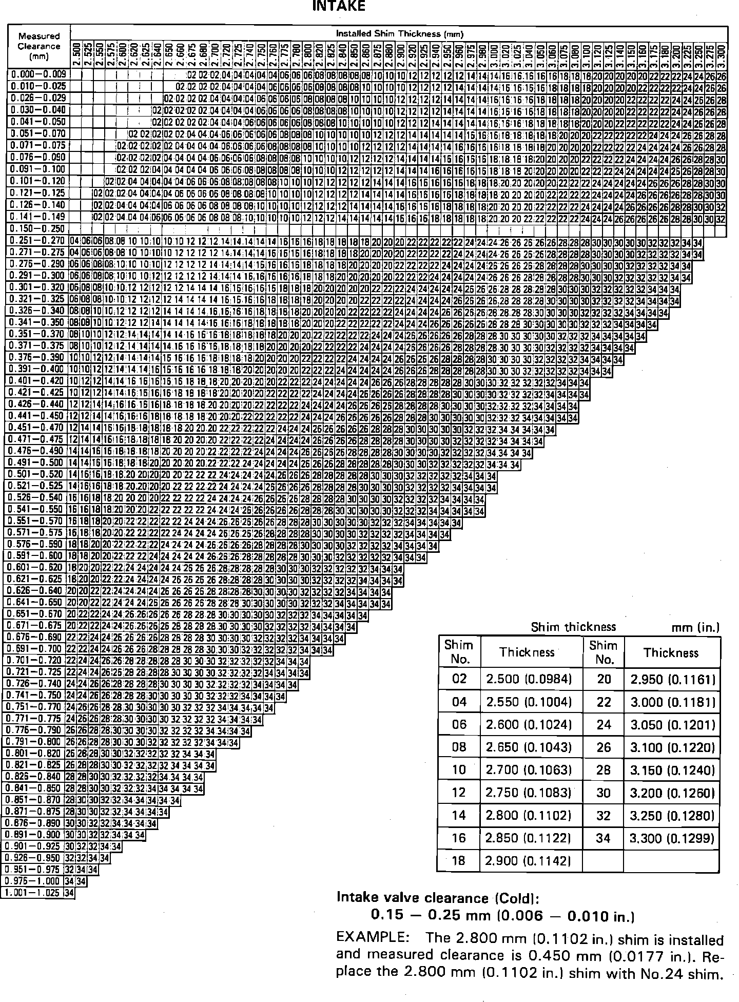 Intake Shim Chart