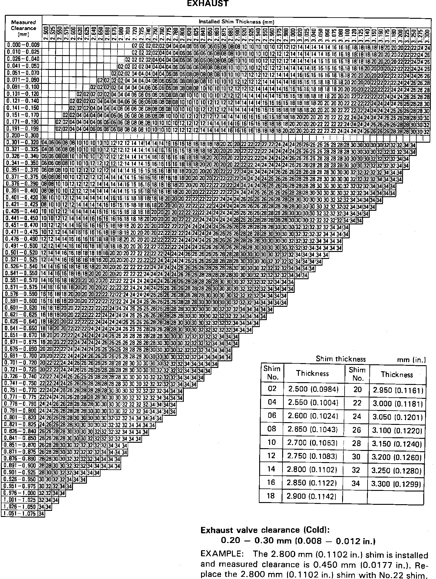 Exhaust Shim Selection Chart: