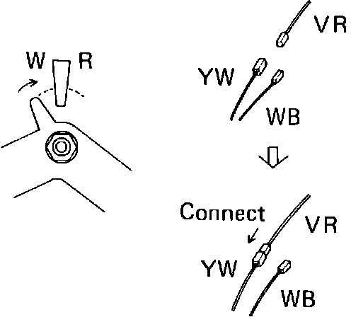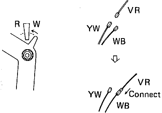 5. If adjusting terminal is over ``R'' area, Fig. 9, connect adjusting terminal to ``VR'' and ``WB'' terminal. If scale is positioned over ``W'' area, Fig. 10, connect adjusting terminal to ``VR'' and ``YW'' terminal.