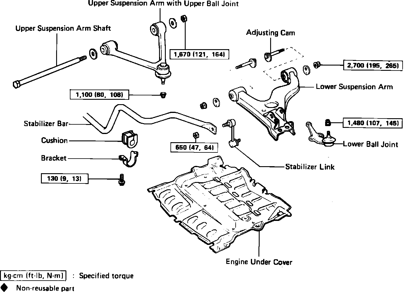 Fig. 13 Front suspension components. Late 1986-88 Supra: