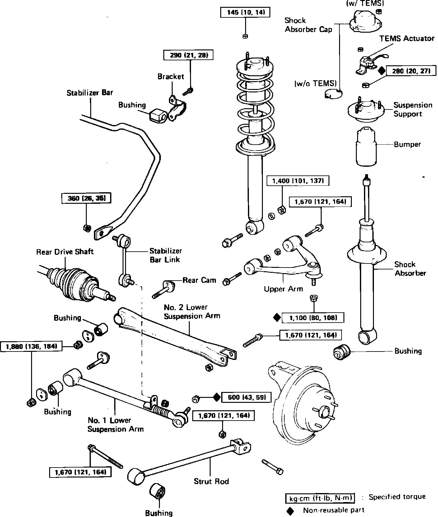 With Independent Rear SuspensionFig. 12 Exploded view of rear suspension components. Late 1986-88 Supra: