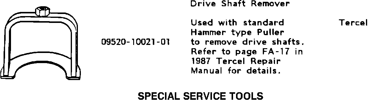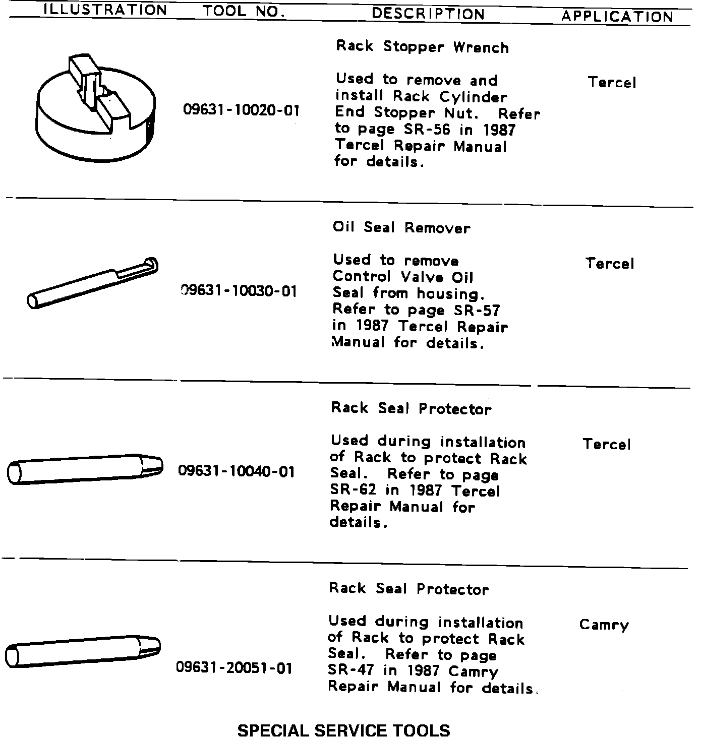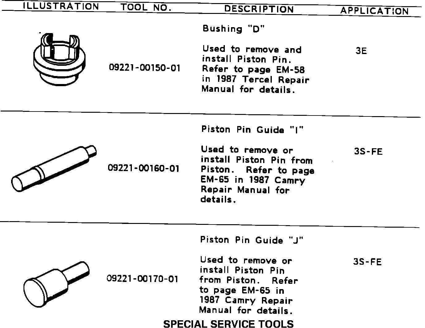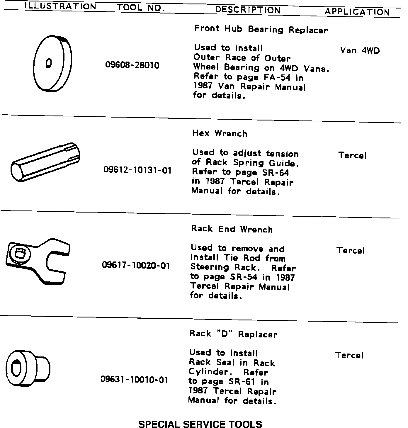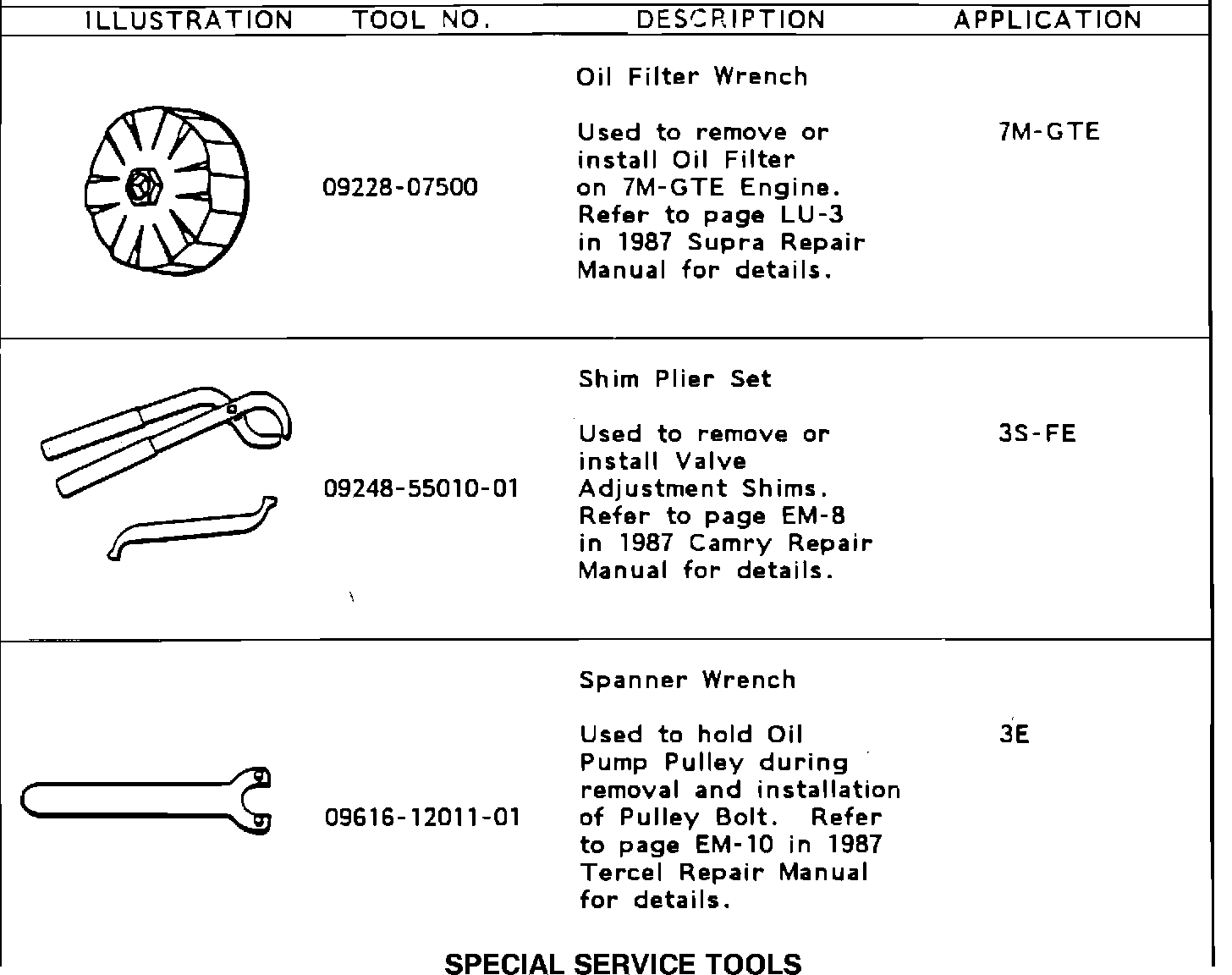 The following essential tools were made available in September, 1986 for repairs on all 1987 New Model Products.