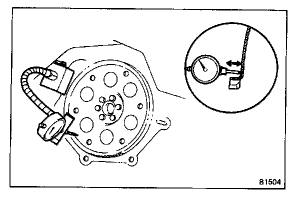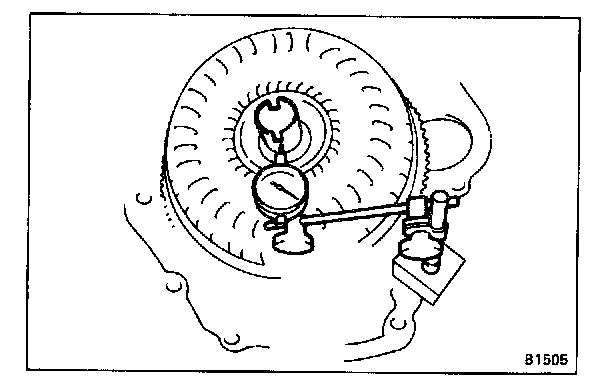 a. Temporarily mount the torque converter to the drive plate. Set up a dial indicator.