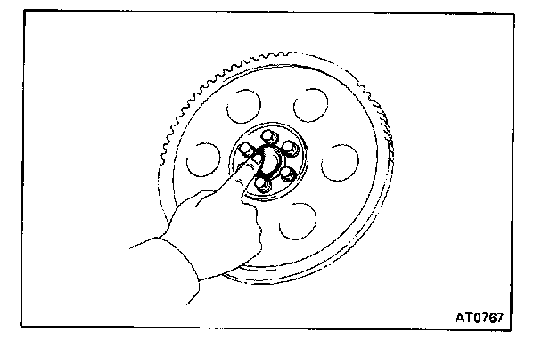 Set up a dial indicator and measure the drive plate runout. If runout exceeds 0.20 mm (0.0079 in.) or if the ring gear is damaged, replace the drive plate. If installing a new drive plate, note the orientation of spacers and tighten the bolts.